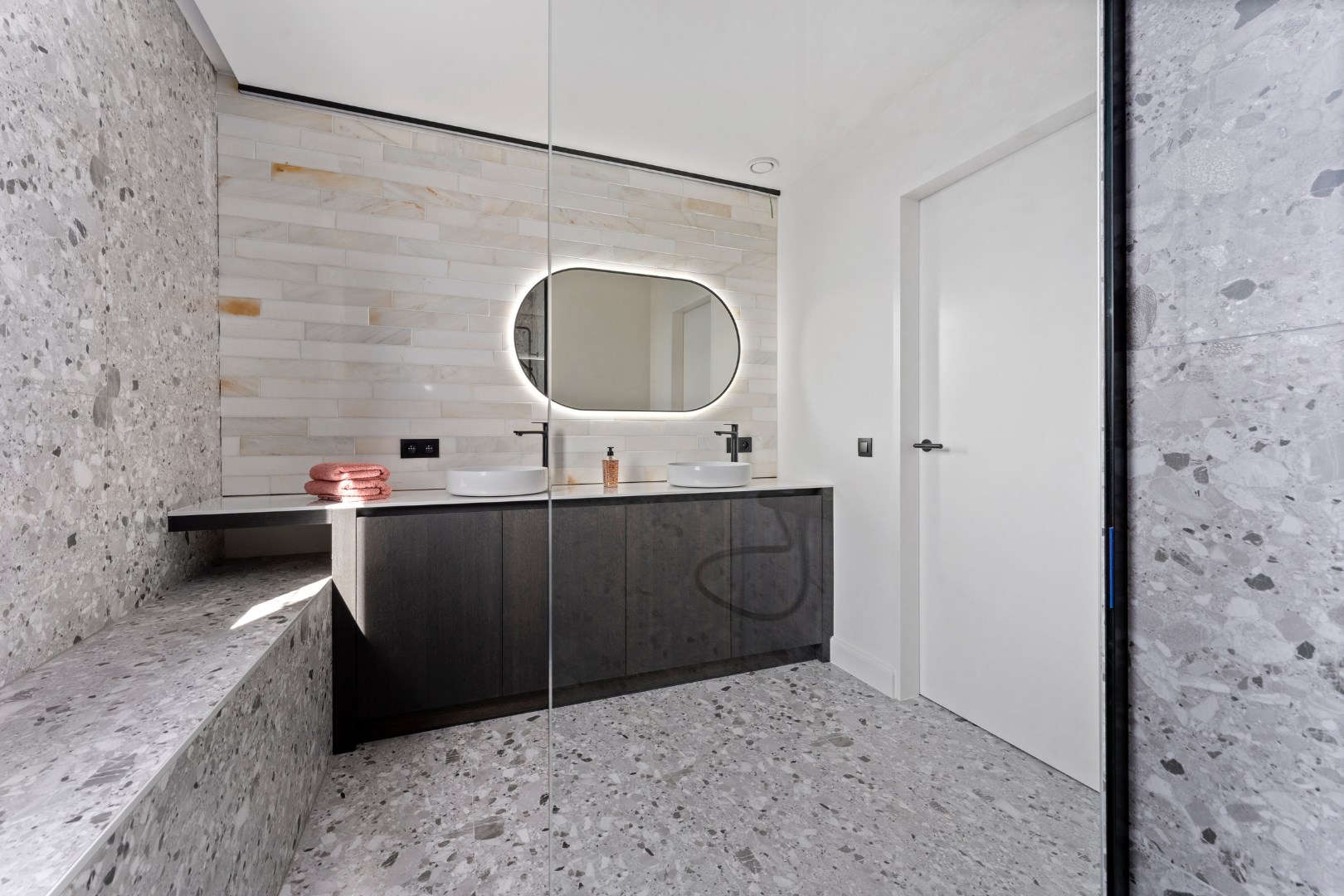 Sind Sie auf der Suche nach einer wunderschönen Wohnung mit viel Tageslicht und hochwertigen Materialien wie Naturstein und Parkett? Dann kommen Sie doch schon mal vorbei und werfen Sie einen Blick auf diese Dachgeschosswohnung. Es gibt einen großen Eingangsbereich, einen gemütlichen Wohnbereich mit breiten Glasfenstern und einer extra hohen Decke. Eine moderne, offene Küche mit Kochinsel. Auf beiden Seiten des Wohnbereichs gibt es eine wunderschöne Terrasse. Außerdem gibt es ein schönes Schlafzimmer, ein luxuriöses Badezimmer mit begehbarer Dusche, maßgefertigtem Doppelwaschtisch und ein separates WC. Der Abstellraum bietet zusätzlichen Stauraum. Im gesamten Gebäude wurde Parkett und verschiedene Arten von Naturstein verwendet, was ein Gefühl von Raffinesse und Luxus vermittelt. Diese Penthouse-Wohnung wurde bereits vollständig gestrichen und mit Lichtarmaturen ausgestattet. Jede Wohnung verfügt über einen geräumigen privaten Keller und einen leicht zugänglichen Autostellplatz mit Ladestation in der gemeinsamen Garage. Die Wohnung befindet sich im gemütlichen Geschäftszentrum, sodass Sie das Auto nicht nehmen müssen, um Ihre Einkäufe zu erledigen. Renovierungsprojekt mit 6% Mehrwertsteuer auf den Konstruktionswert!