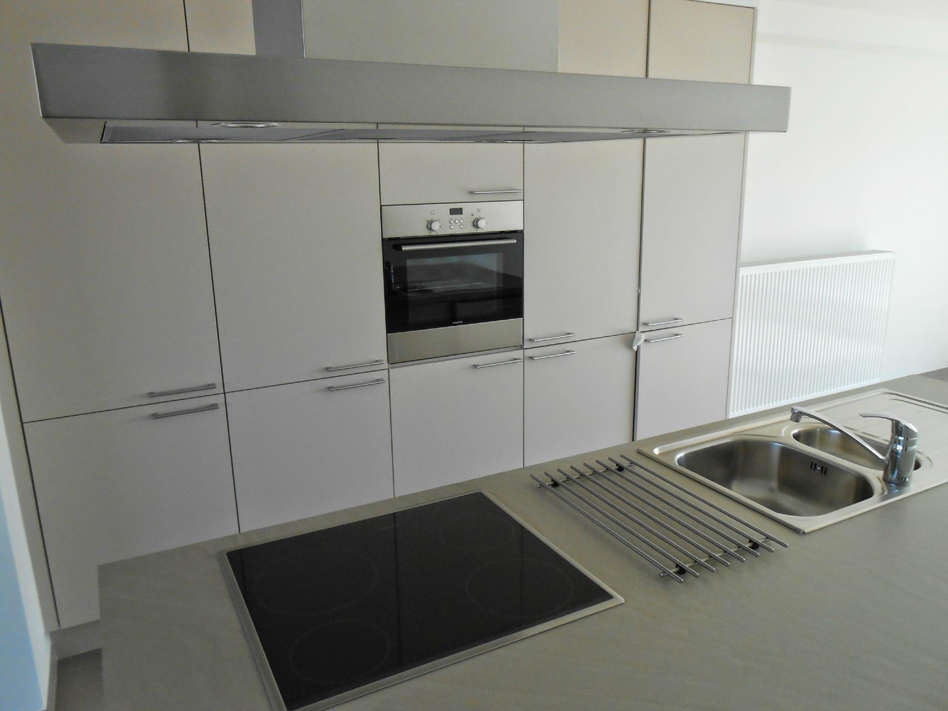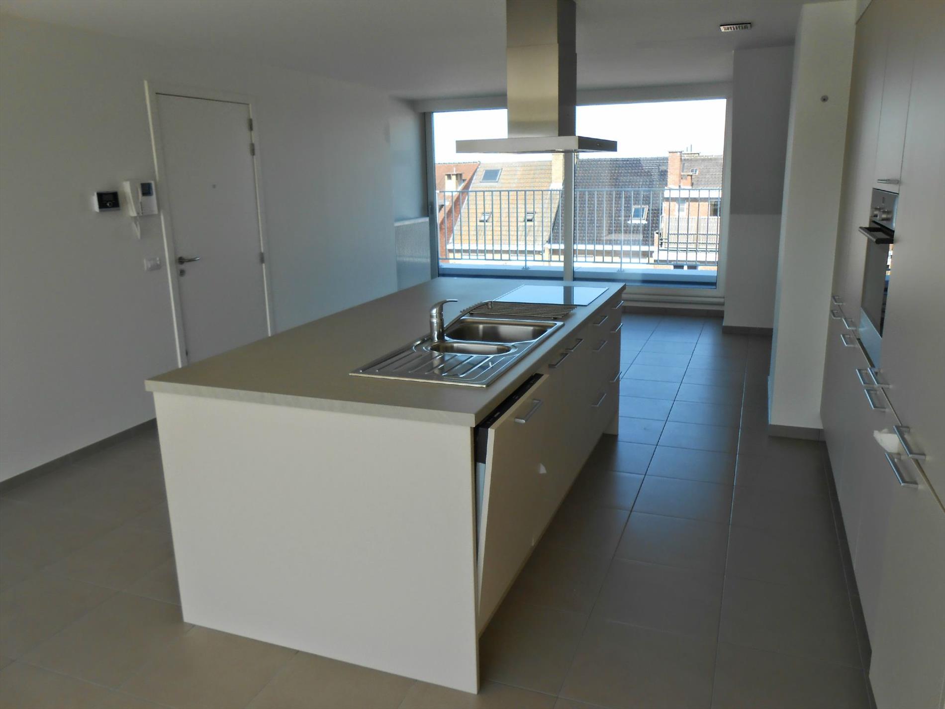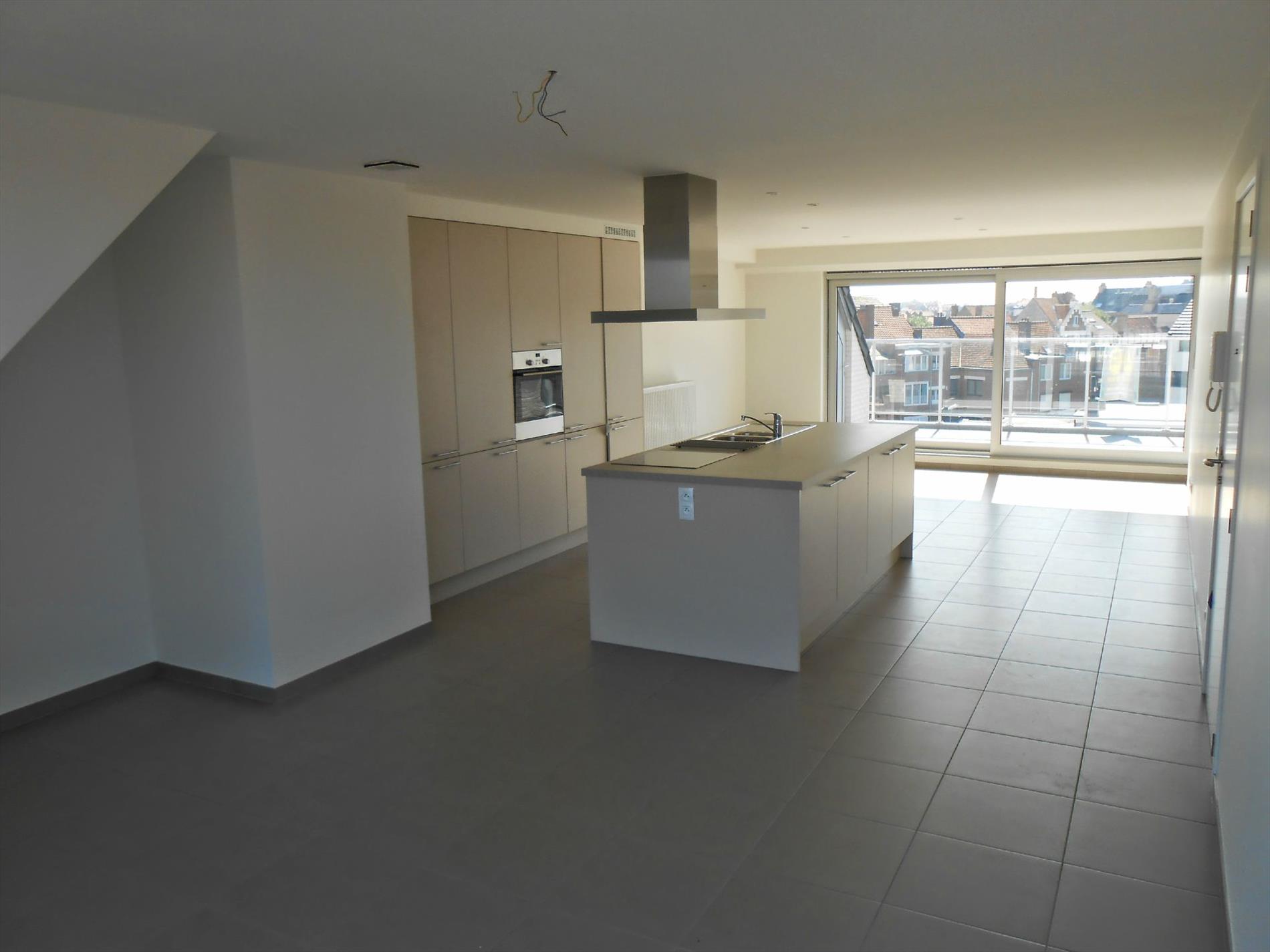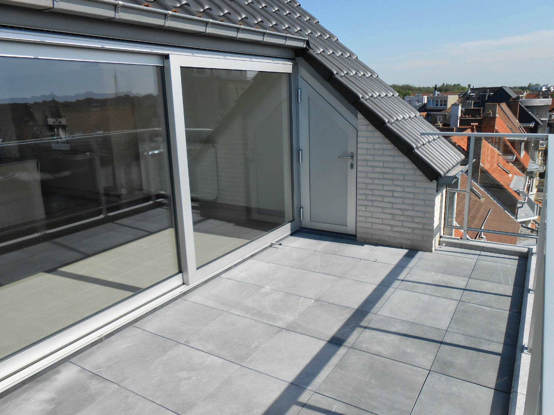 Het appartement bevat een grote leefruimte met aansluitend een groot dakterras. Er is een volledig ingerichte moderne keuken met vaatwasser en een grote berging. Op het verdiep vindt u een grote badkamer met douche en mooi lavabomeubel en apart toilet. En een zeer ruime slaapkamer. Ook aan de achterzijde is er een terras. Het appartement werd luxueus afgewerkt. Bij het appartement hoort een zeer ruime privatieve berging en er is een fietsenberging in deze verzorgde residentie.