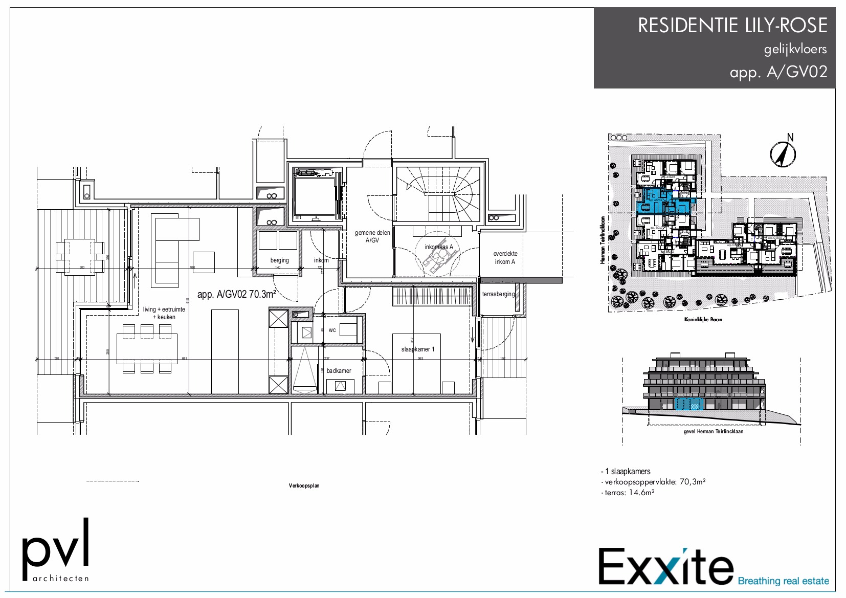 Dit appartement in de Residentie Lily-Rose heeft een ruime living met grote ramen die toegang verschaffen tot een mooi terras. Er is een ingerichte keuken met extra berging. De grote slaapkamer heeft een ensuite badkamer met inloopdouche. Elk appartement heeft een privatieve kelder. Er is ook een fietsenberging. Mogelijkheid om in de residentie een parking aan te schaffen.