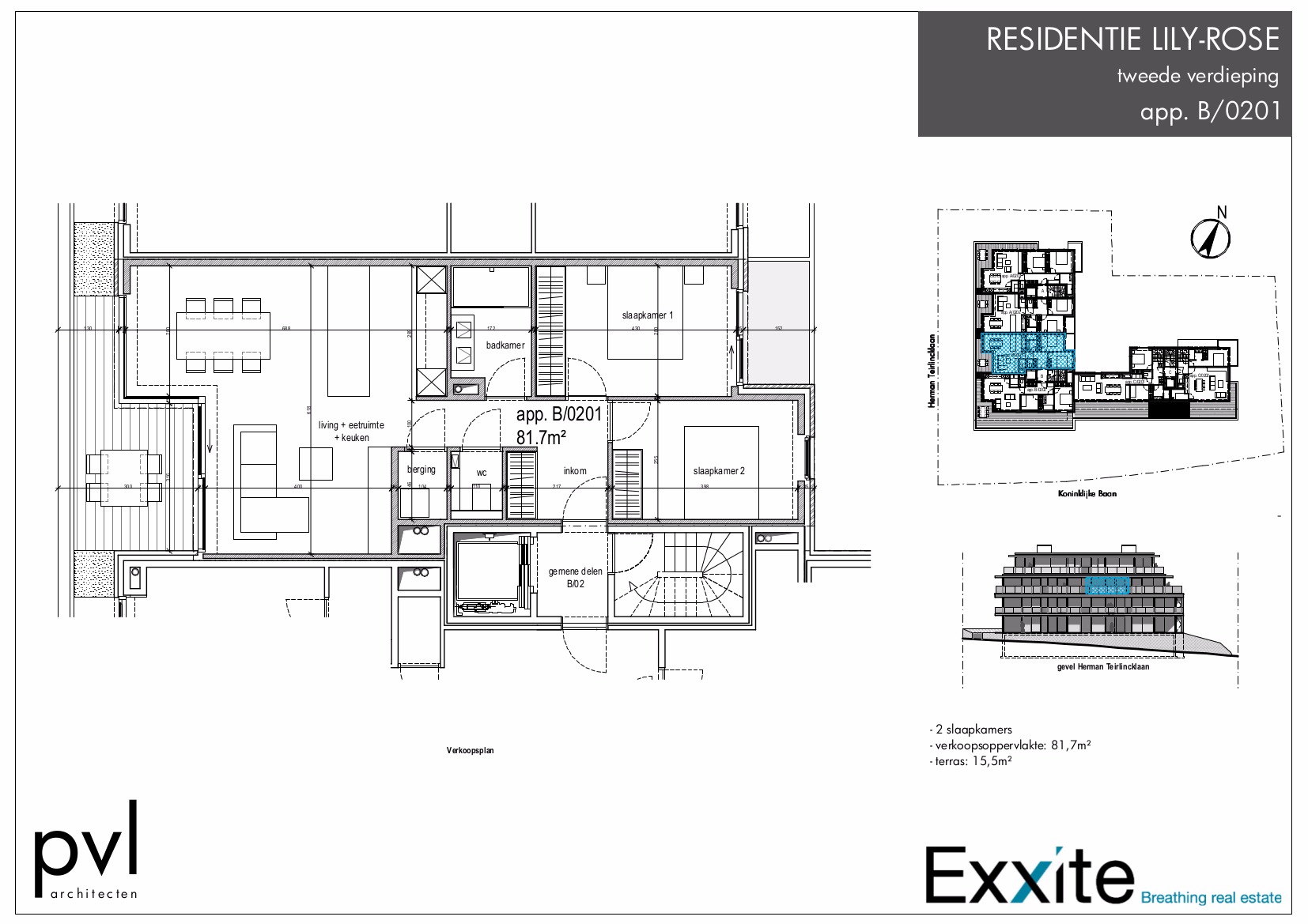 Dit appartement heeft een ruime living met grote ramen die toegang verschaffen tot een mooi terras. Er is een ingerichte open keuken met extra berging. Er zijn twee ruime slaapkamers. De badkamer heeft een lavabomeubel en een inloopdouche. Het appartement heeft een privatieve kelder. Er is ook een fietsenberging in het gebouw. Mogelijkheid om in de residentie een parking aan te schaffen. De residentie Lily-Rose ligt op 100 meter van het strand van Sint-Idesbald.