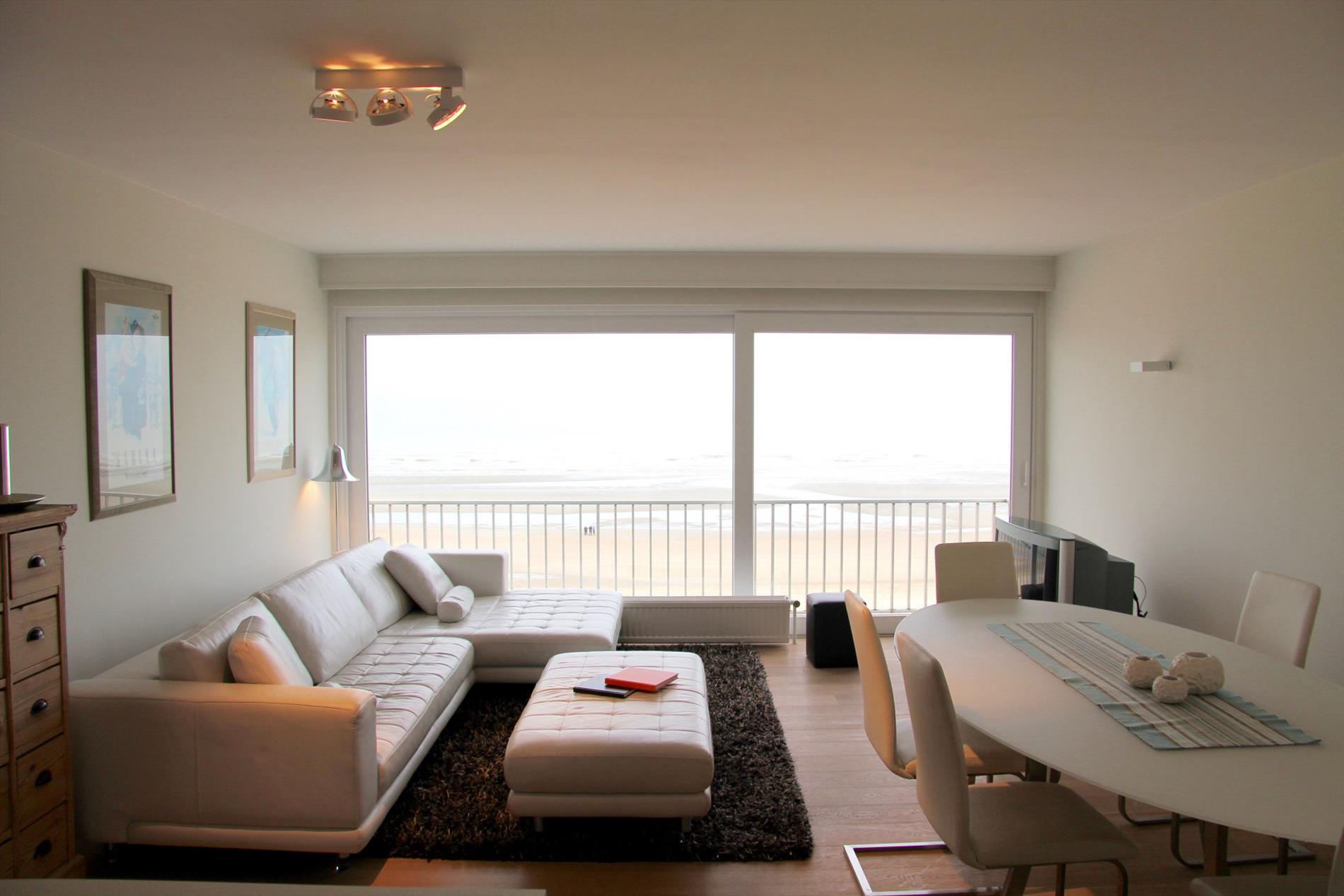 Op de zeedijk van Koksijde bevindt zich dit mooi appartement. Het bevat een ruime leefruimte, een volledig ingerichte keuken, twee ruime slaapkamers met balkon, een badkamer met inloopdouche en lavabo, en een apart toilet. Bij de renovatie werden kwalitatieve materialen gebruikt met oog voor detail. In de residentie bevindt zich een zwembad door u vrij te gebruiken. Het zeezicht vanop de vijfde verdieping is adembenemend. Voor meer details bel 058/52.22.36