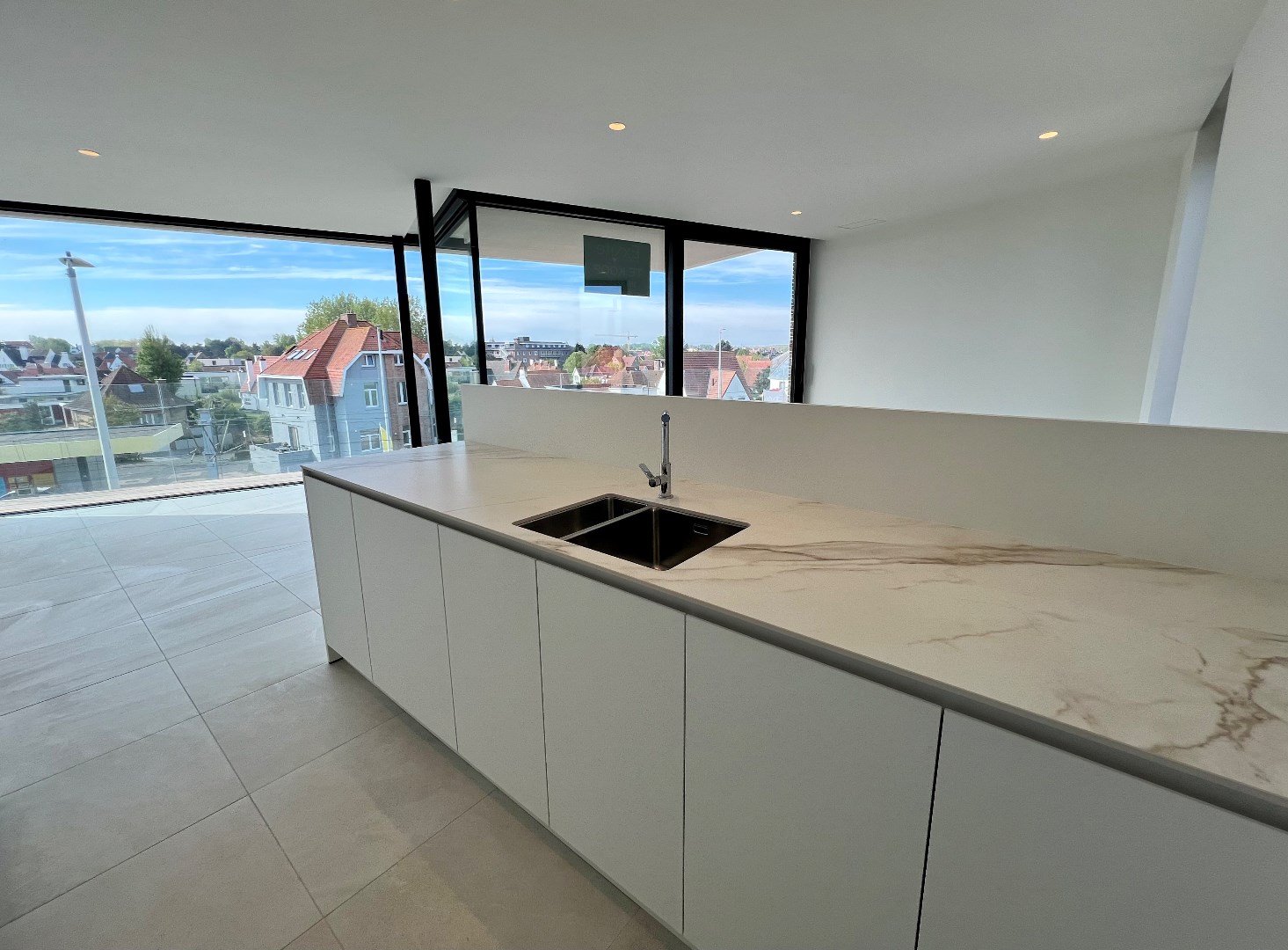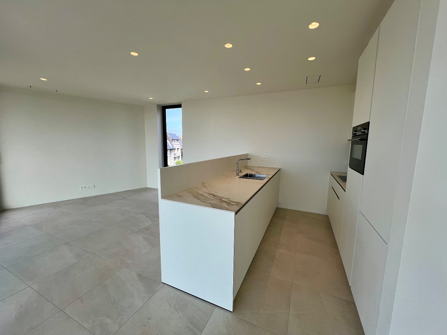 Ce luxueux penthouse dans la Résidence Hugo, près de la plage de Saint-Idesbald, dispose d'un espace de vie ouvert avec de grandes fenêtres donnant accès à une grande terrasse orientée plein sud. Il y a une cuisine moderne avec îlot. Il y a deux grandes chambres, dont une avec terrasse également. Une belle salle de bains avec douche à l'italienne et des toilettes séparées.
